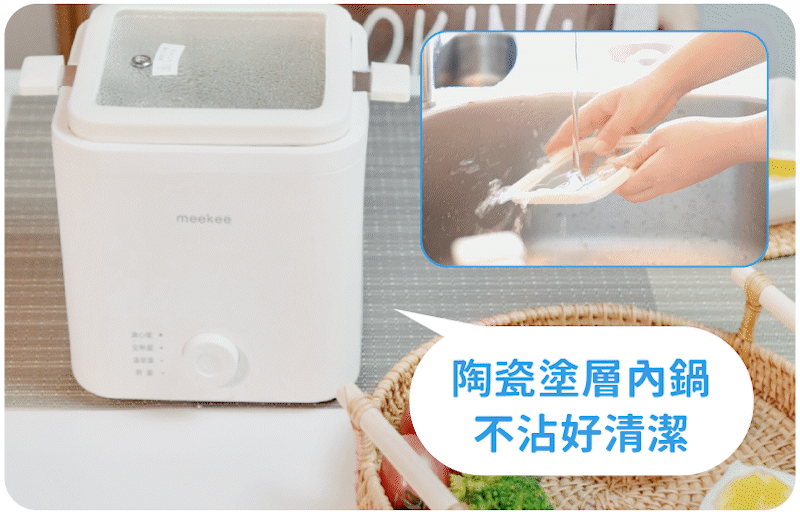陶瓷不沾內鍋材質,搭配可分離式電源線,方便使用後清洗,一沖即淨不沾黏、不卡油垢。