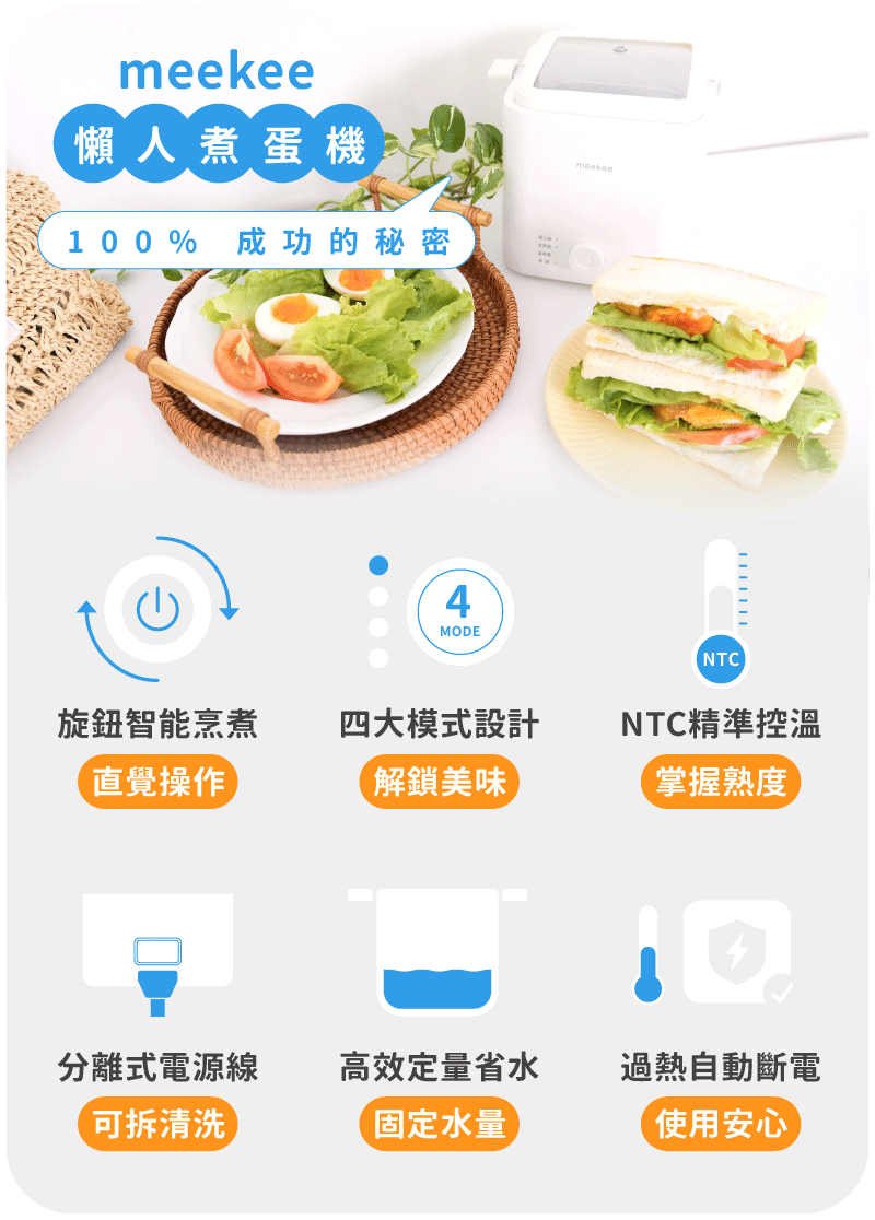 告別明火烹煮溫度與時間的困難,團隊精心實驗上千次,找到理想的溫度、時間、熟嫩比例,透過 NTC 智慧精準控溫,煮出理想的蛋黃熟嫩口感!
