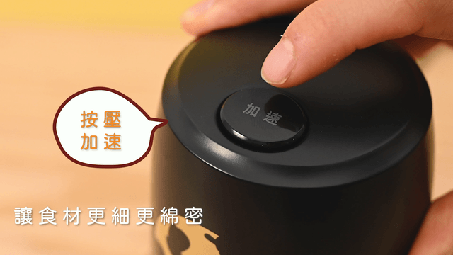 下壓單鍵操作,按壓即可使用;還有加速功能,可讓食材更綿密細緻!