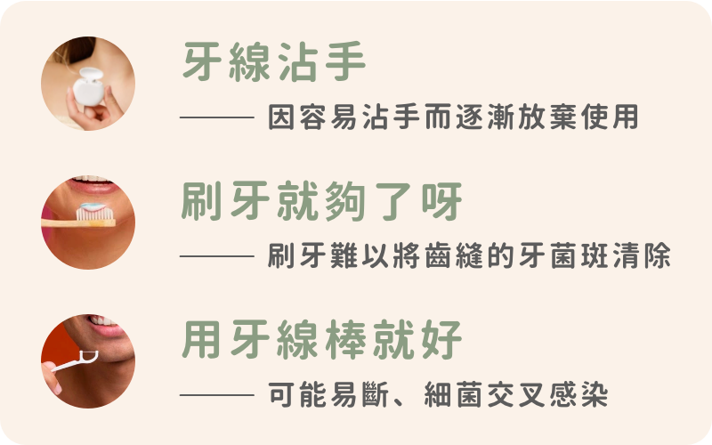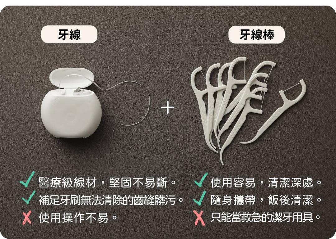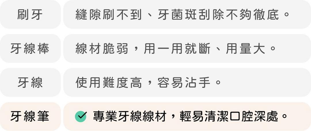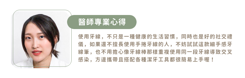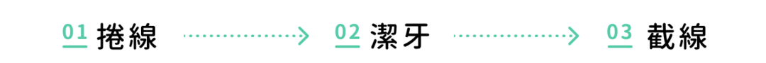 • ② 潔牙:以牙線棒的用法清潔牙齒間的縫隙,持續更換牙線,避免交叉沾染細菌。