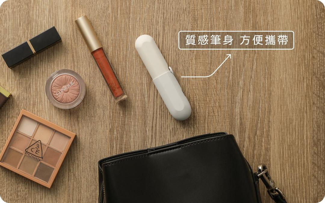 獨特設計筆身,大小與一般隨身化妝品、保養品大小差不多,能輕鬆裝進背包、隨身包裡。