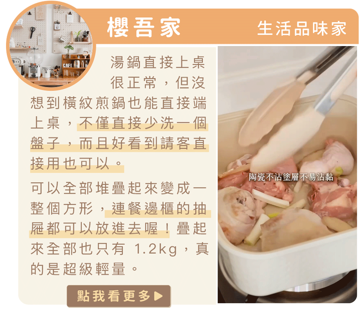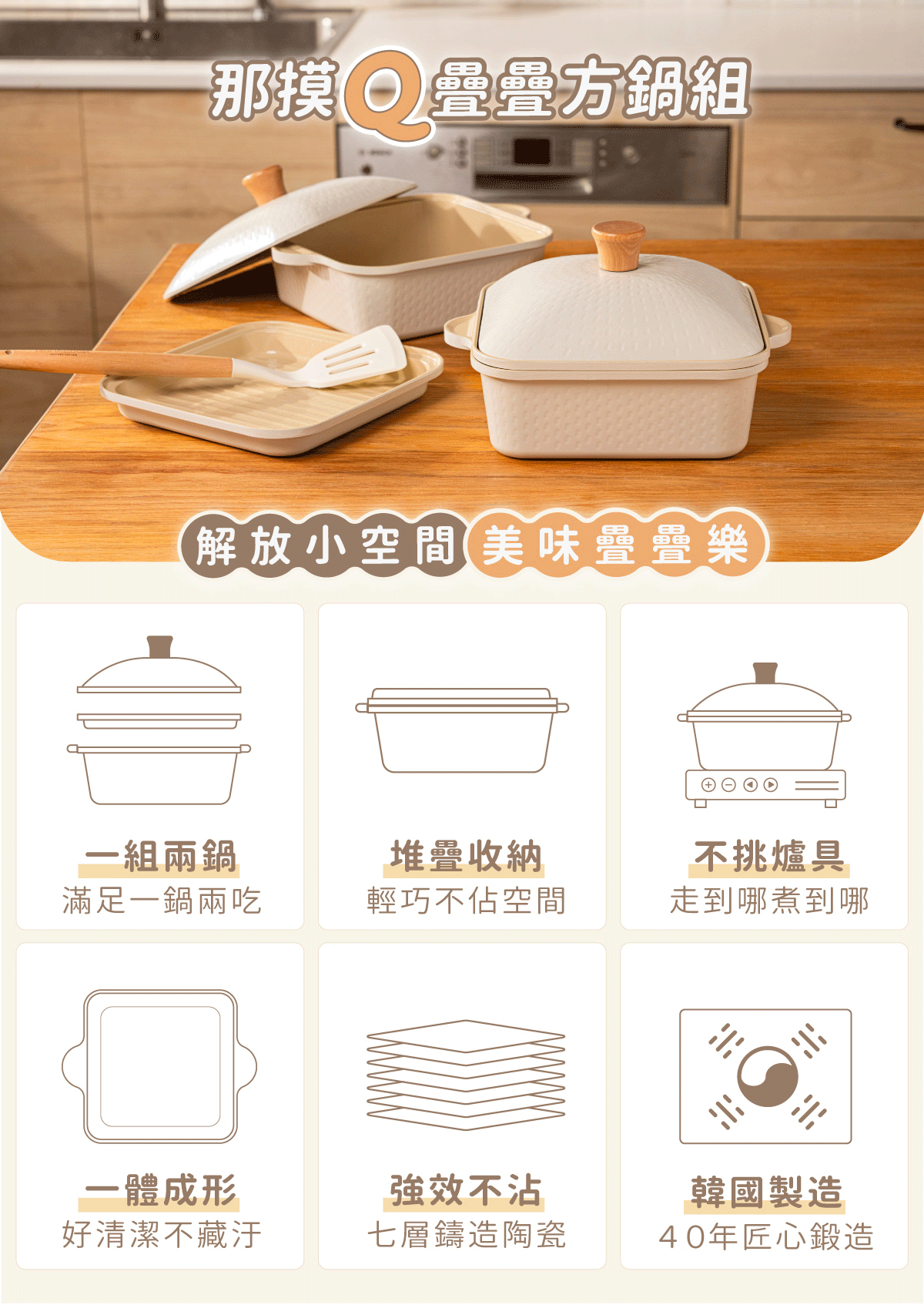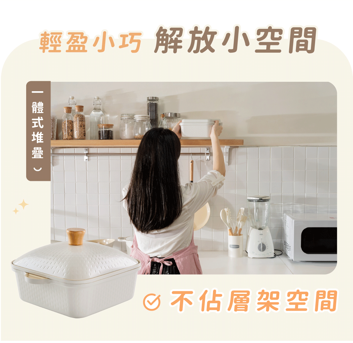 套房族、小坪數居家空間福音!告別笨重又佔位置的鍋具,小巧尺寸又可堆疊,輕鬆收入抽屜櫃,釋放出更多廚房空間,還你清爽居家生活。