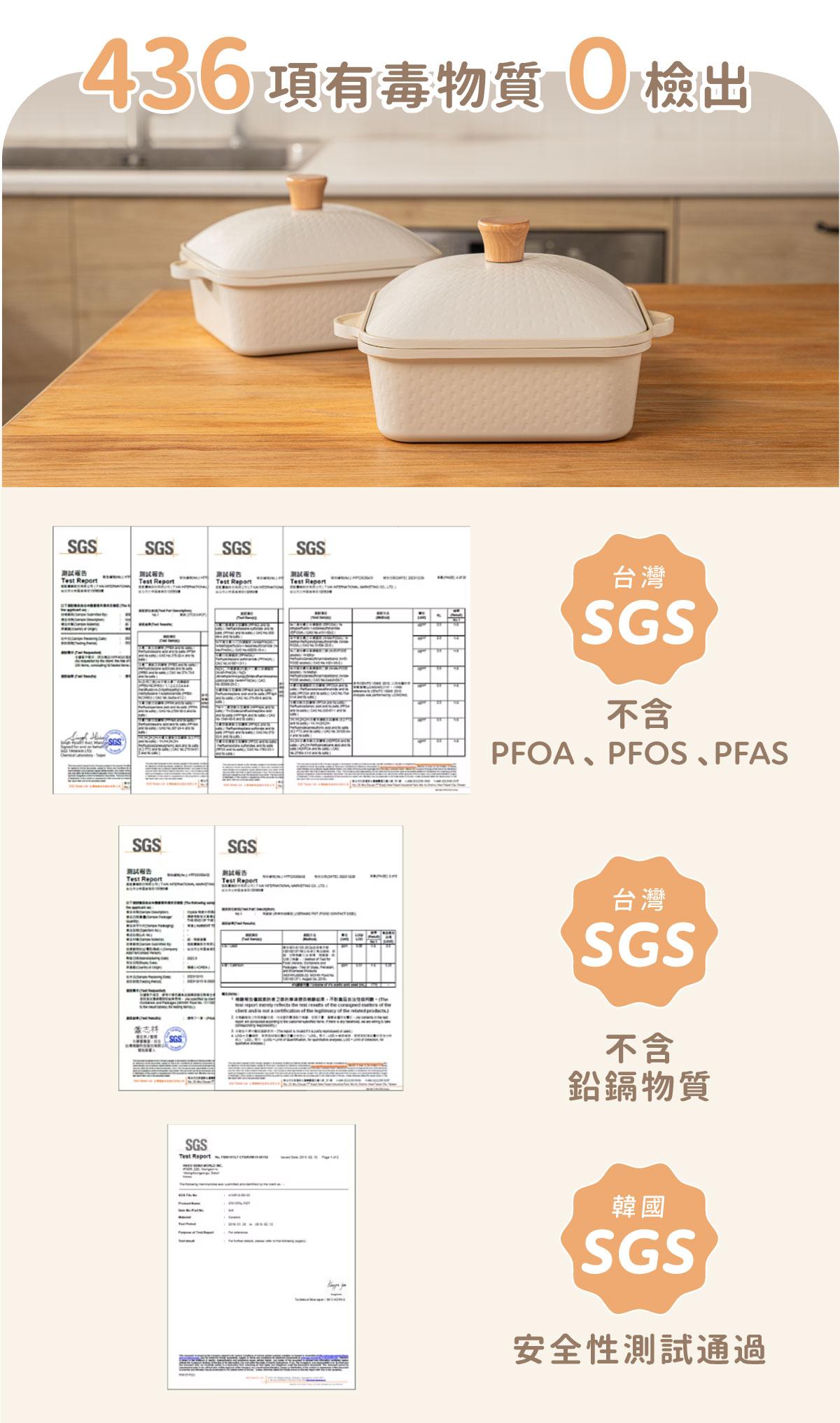 安心才能每天吃下肚,煮夫/婦們擔憂的不沾鍋塗層,疊疊鍋為你超前部署,已通過台、韓,以及第三方 SGS 認證,保證未含 PFOA 、 PFOS 、PFAS等四百多項有毒物質,安心煮放心吃!