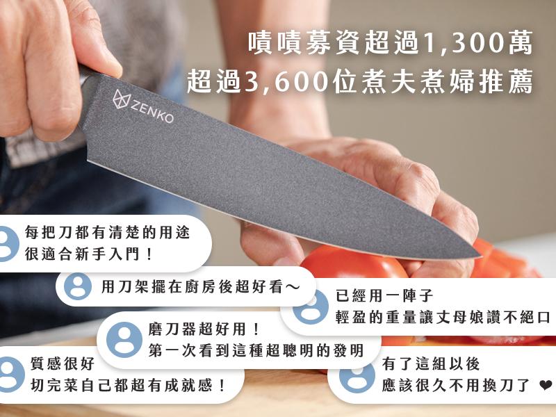 ZENKO 來自瑞士蘇黎世,是一群由廚師、設計師好友組成的團隊,努力用最好的材料重新定義廚房刀具,融合東西方風格,打造出一套最實用、細緻簡約的廚刀組。結合日本 AUS-10 高碳鋼與美國華福公司生產之 Fusion®Titanium 陶瓷不沾塗料,為你一刀切斷所有煩惱,結合高碳鋼堅固鋒利、陶瓷塗層不沾易洗等特色,好刀在手讓你在廚房裡橫著走。