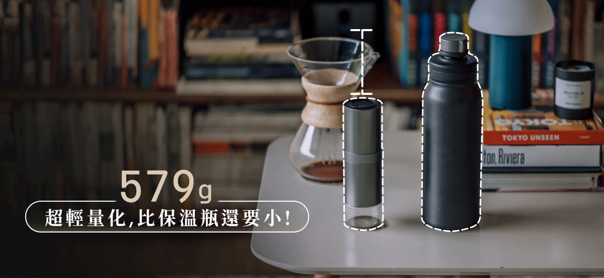 僅有 579g 重量超輕,體積比保溫瓶還要小,可以隨手拎著走,放進隨身包裡也不覺得負擔,無論在家、辦公室、戶外露營都能隨時享受最講究的現磨咖啡香氣。