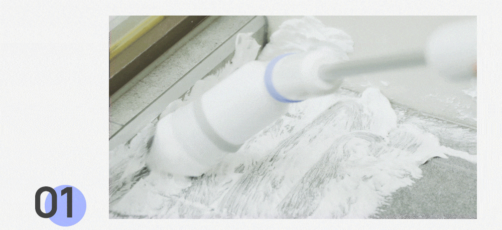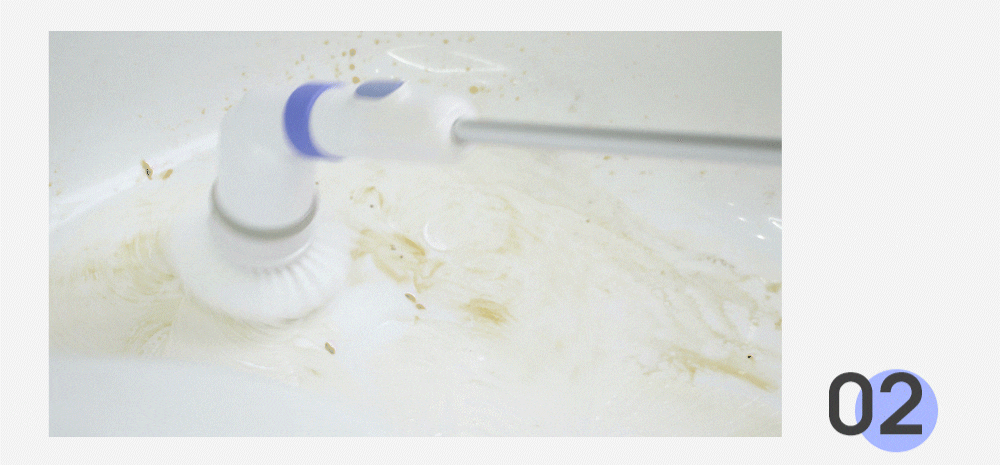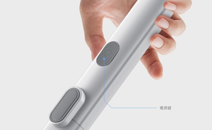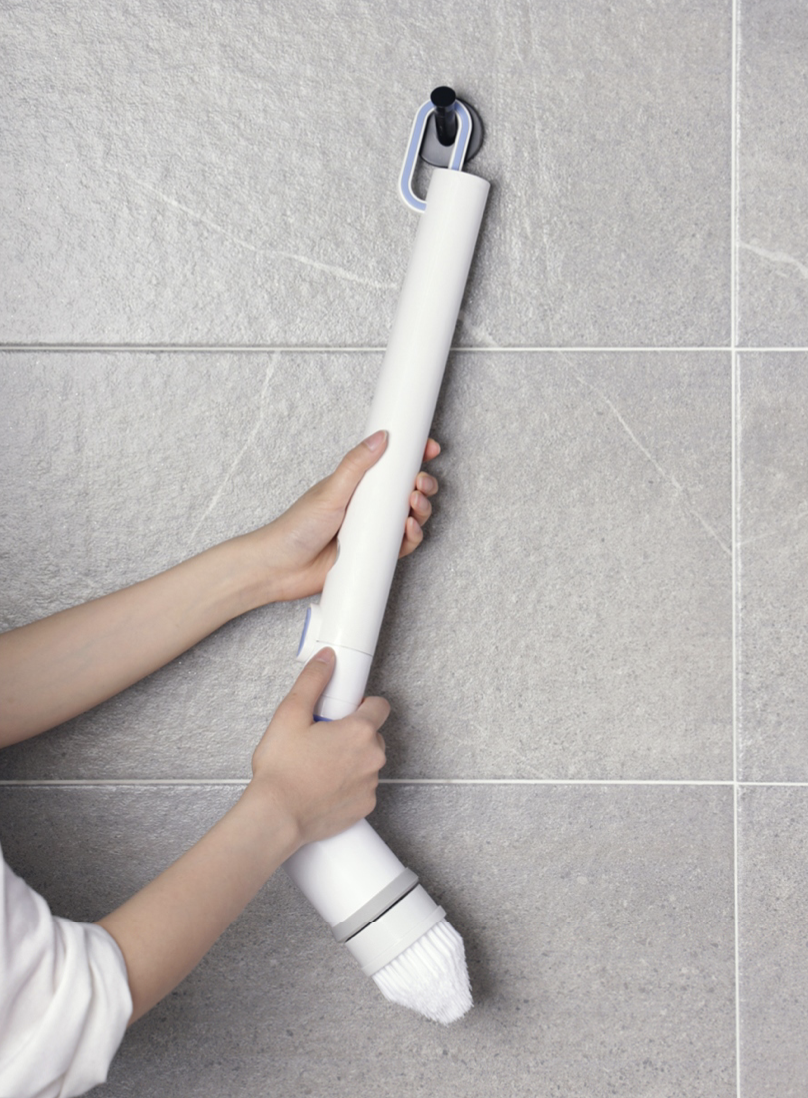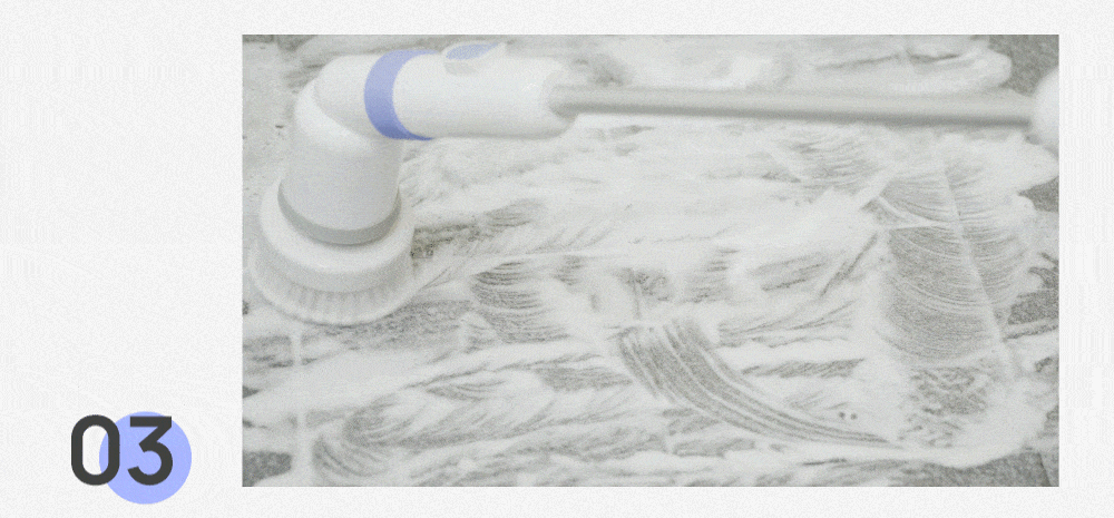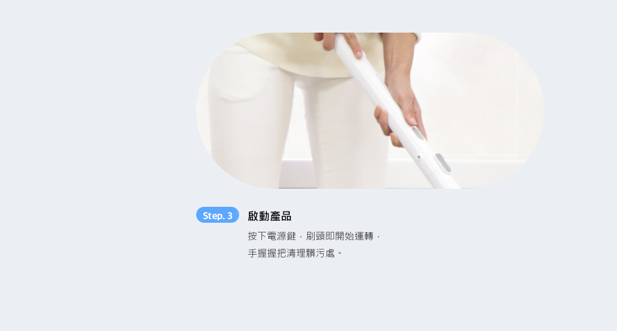 3. 啟動產品:按下電源鍵,刷頭即開始運轉,握住握把即可清理髒污處。