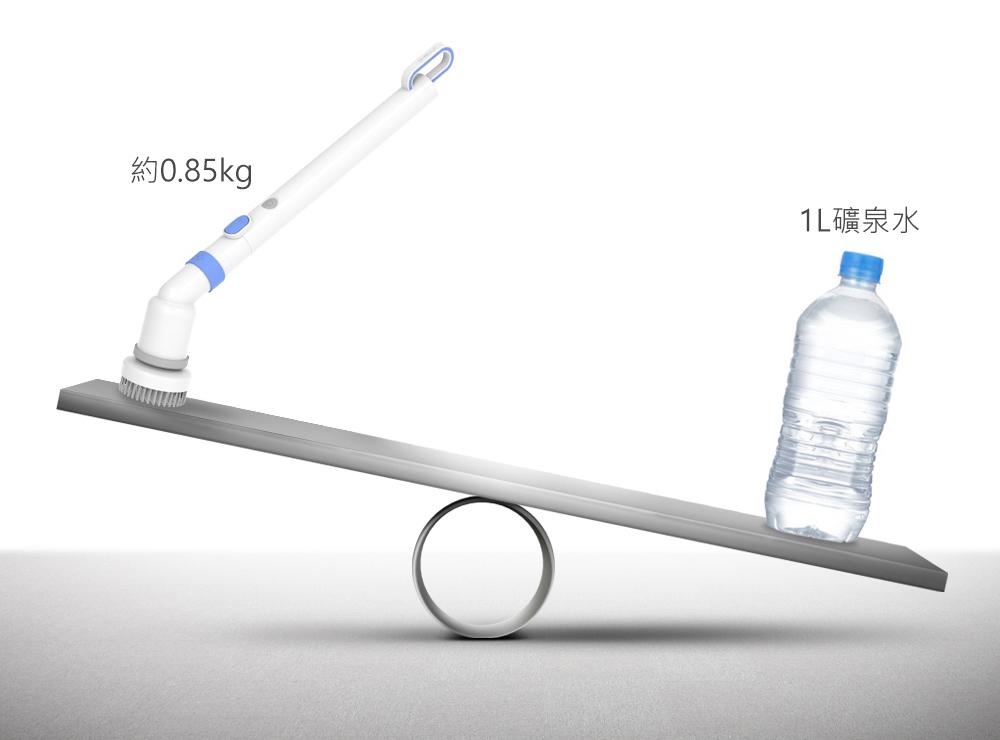 本產品重 0.86 公斤,不到 1 公斤的重量,比礦泉水還輕!能減輕手腕負擔,適合女性、孩童使用,即使是天花板也能輕鬆清潔。