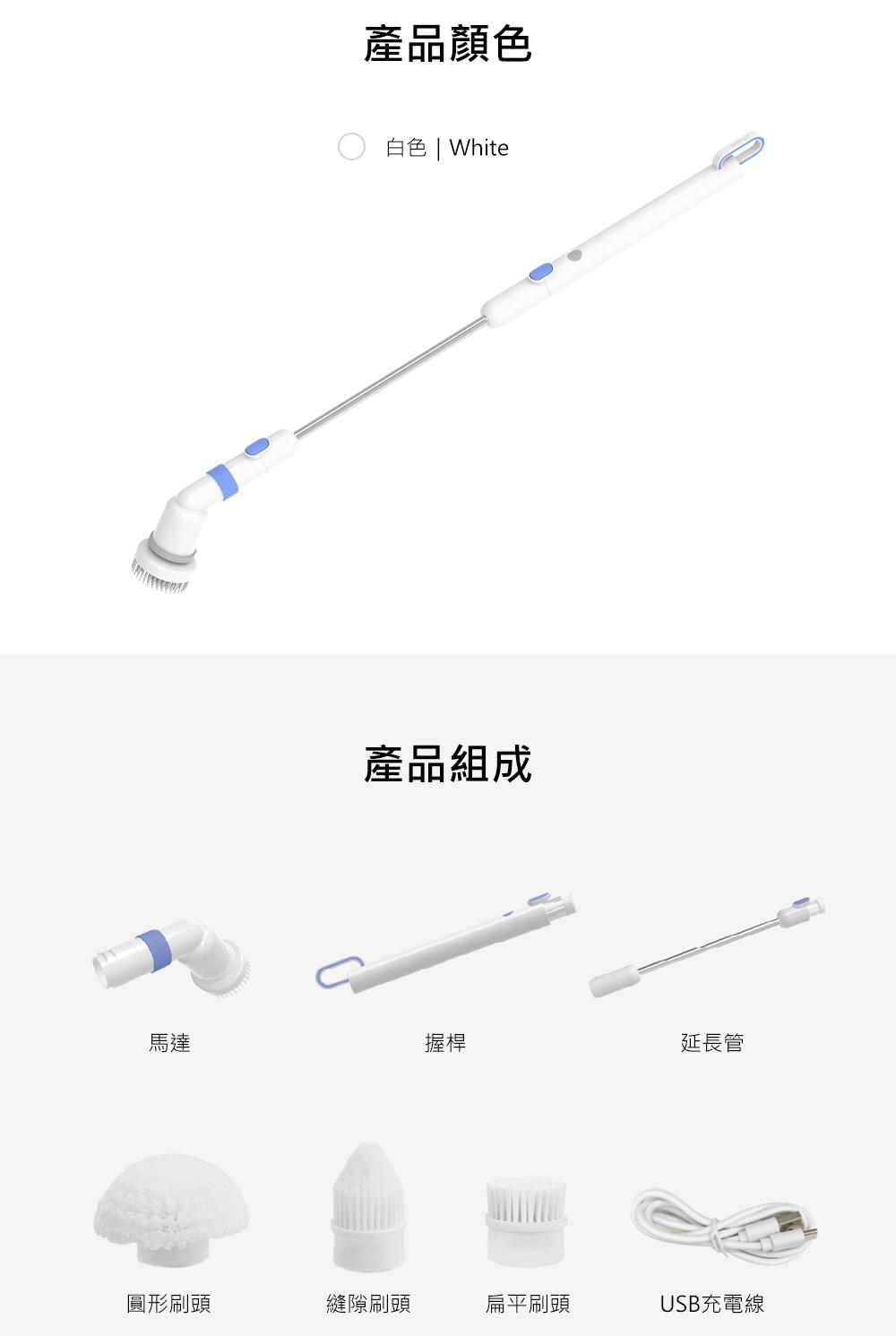 內容物:握把x1+延長管x1+刷頭x3(圓形、扁平、縫隙各一)+馬達x1+USB充電線