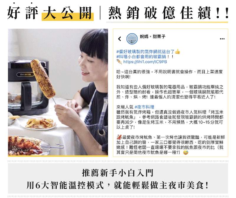 玻霸鍋內鍋採耐熱玻璃材質,不僅更方便掌握料理進度,也能解決了傳統氣炸鍋不易清潔的麻煩。