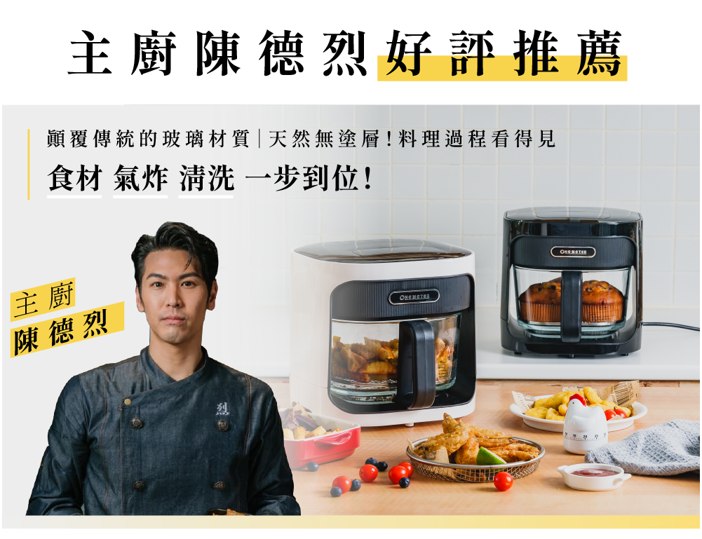 清洗方便,隨附配件皆可拆出清洗,玻璃材質免去傳統油炸後續清理,清潔便利又環保。