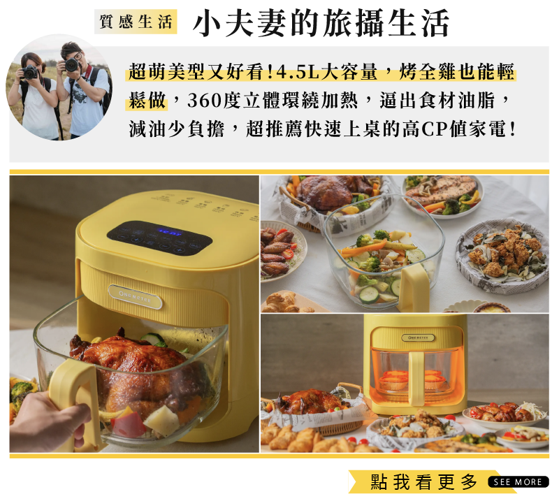 廚房必備神器,容量升級至 4.5L,煎、烘、炸、烤,一鍋搞定,輕鬆滿足一家人料理需求。