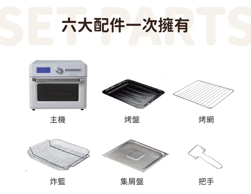 內容物:主機、炸籃、烤盤、烤網、集屑盤、把手