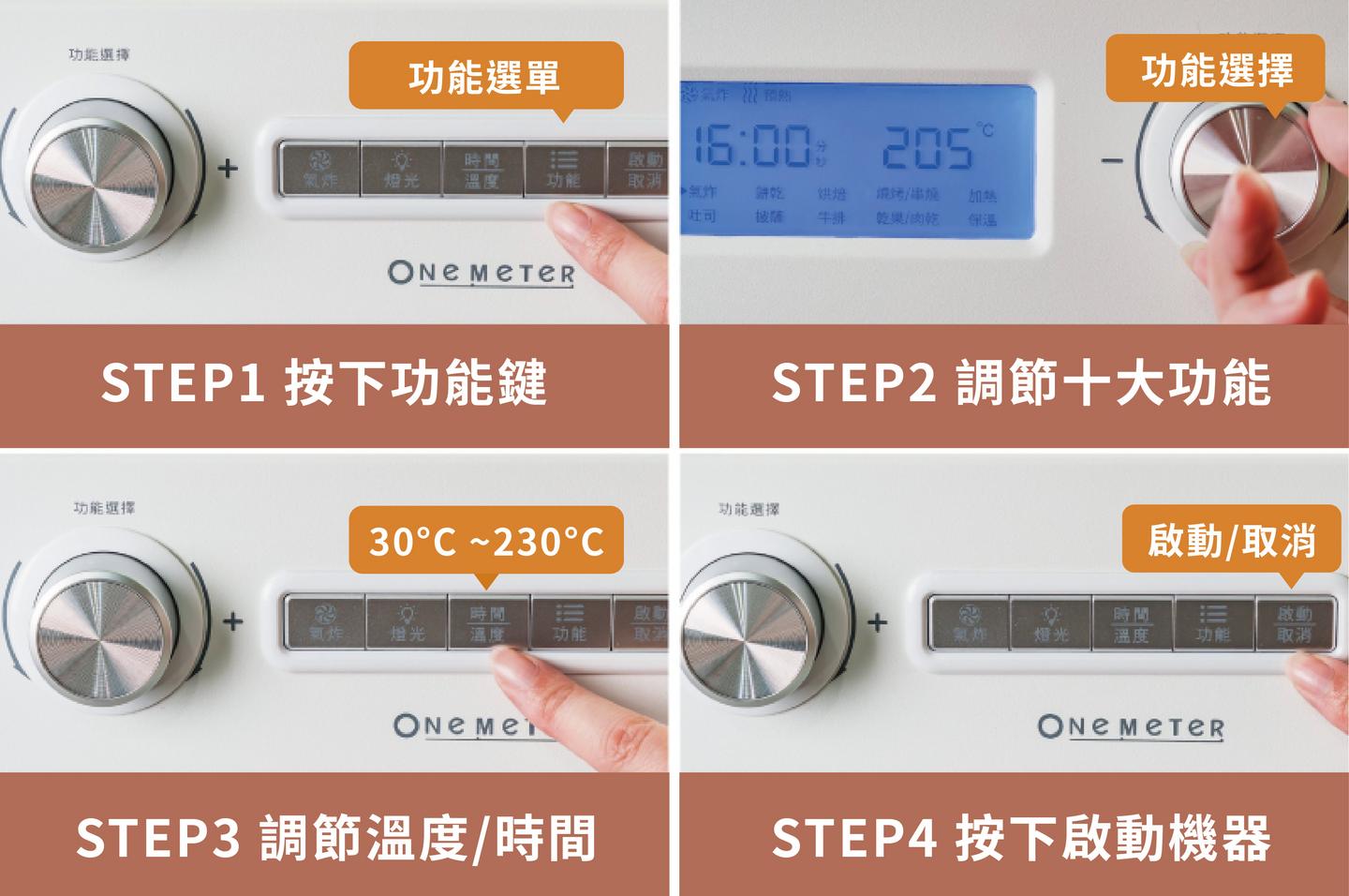 - 30~230°C 自由調節,完美掌控料理時間