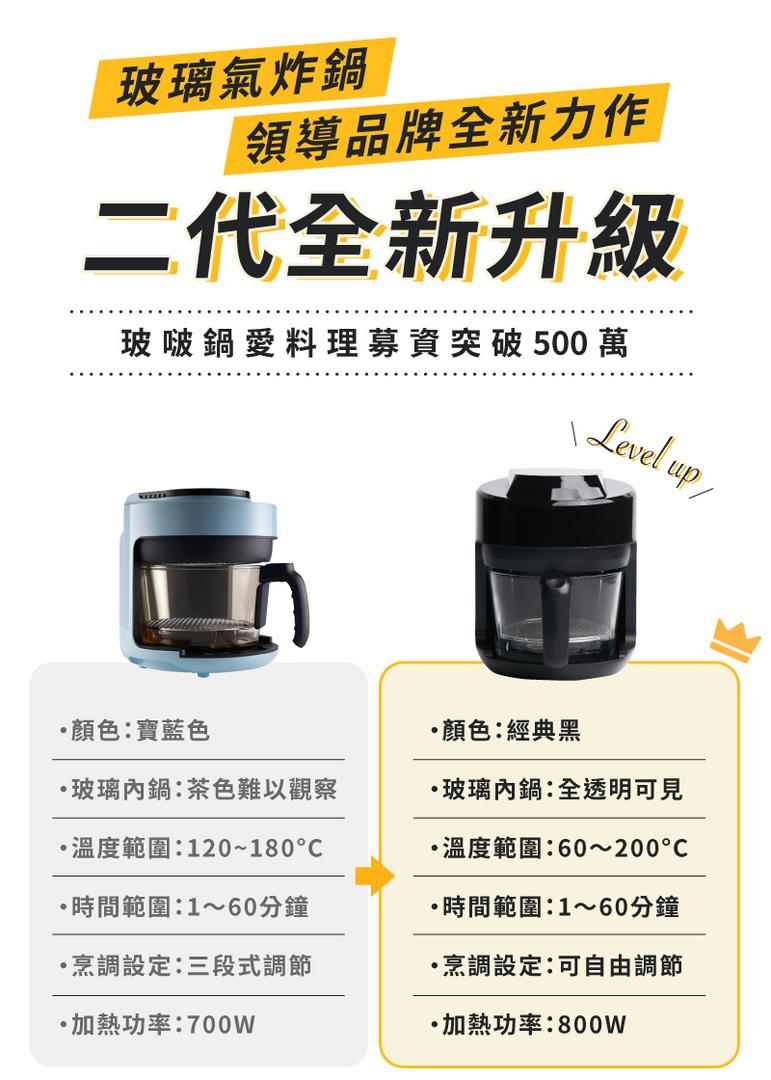 玻啵鍋 2.0 全面升級,立體 360° 環繞加熱更快速,溫度 60~200°C 更廣範圍,看得見美味的玻璃氣炸鍋,輕巧不占空間,操作好上手,炸、烤、烘、煎一鍋搞定,即刻上桌美味不等候!