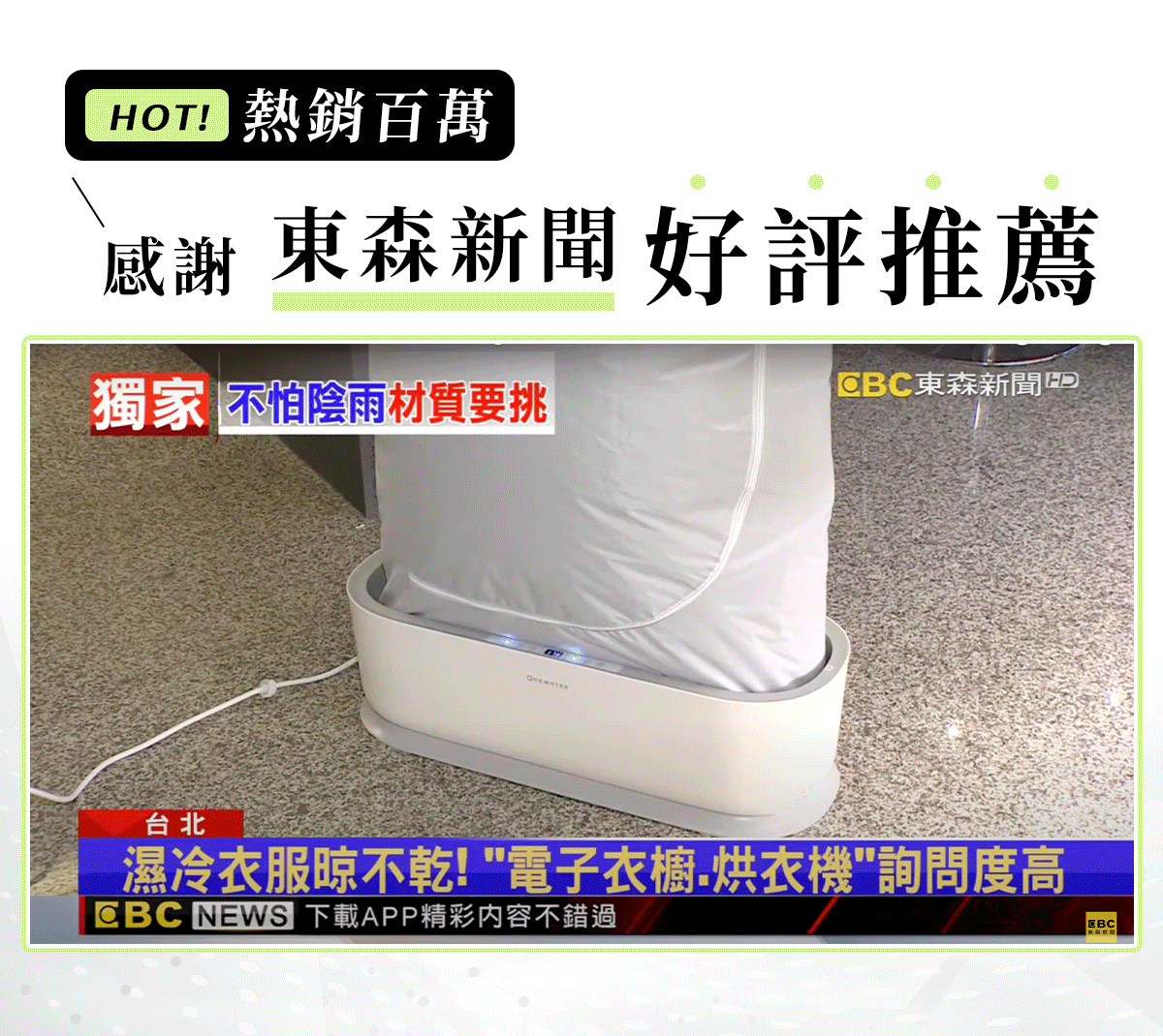 不怕下雨不能曬!模擬陽光烘曬效果,熱風快速烘乾衣物,呈現太陽曬過的柔軟舒適感!六段定時設計,根據不同布料自由選擇!