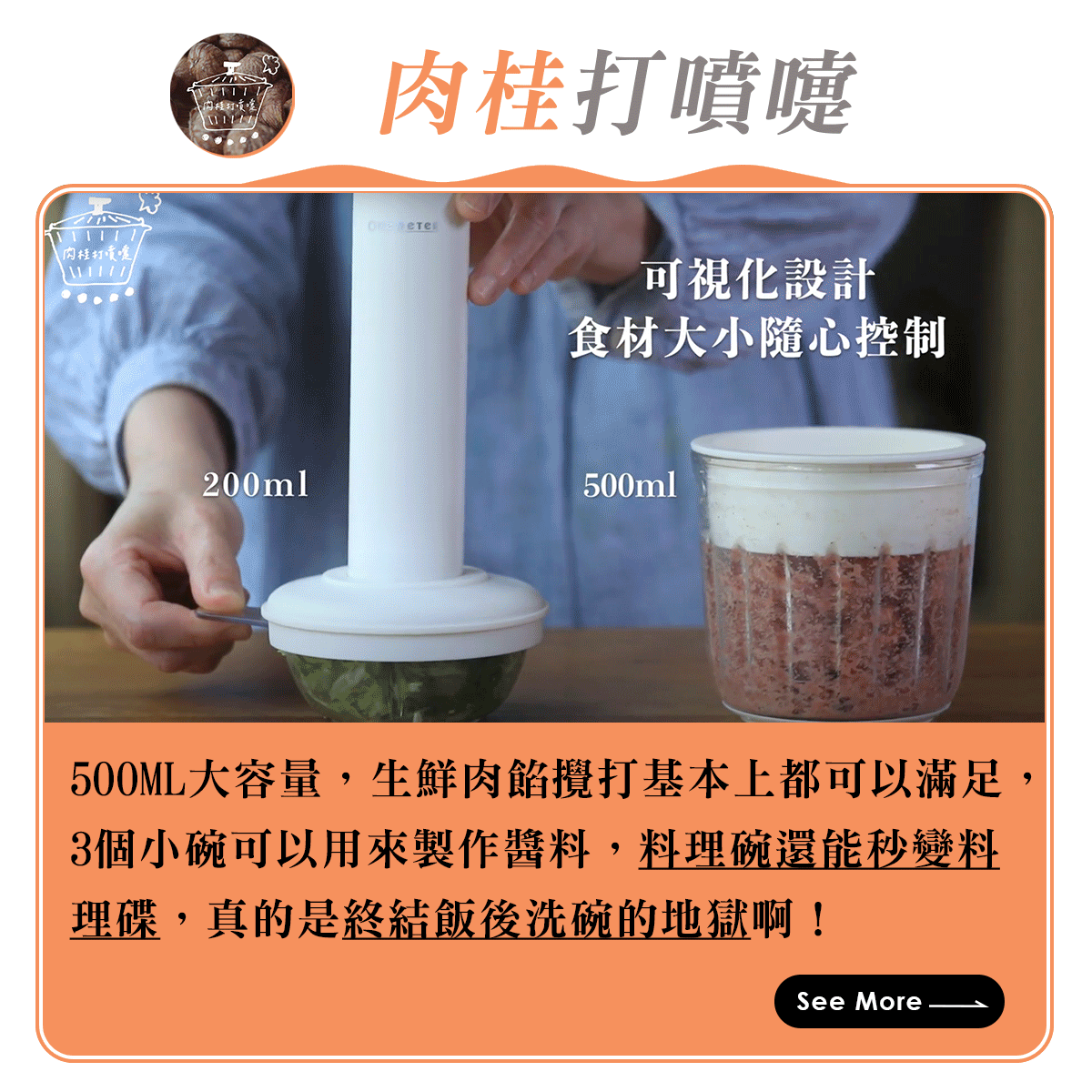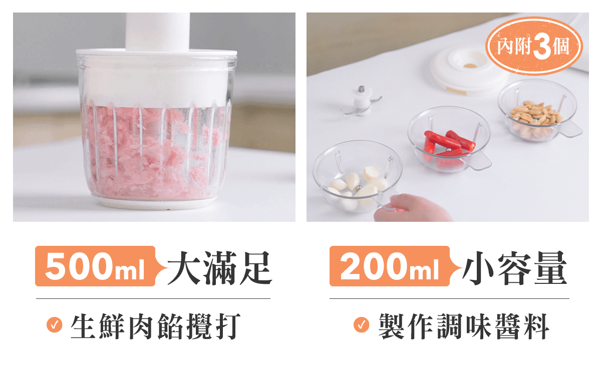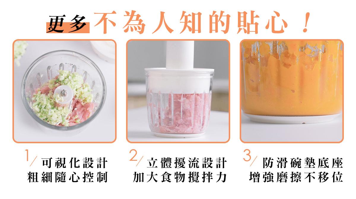 簡單三步驟!放入食材,蓋上蓋子,一鍵按壓,即可將食材快速絞碎,備料變得超 Easy!
