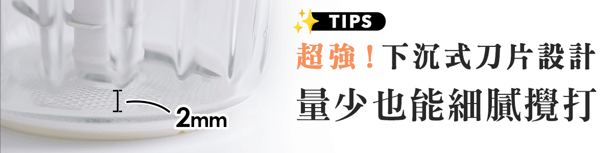 高速馬達搭配不鏽鋼刀頭,只需 20 秒即可擊破冰塊、配料和肉末,備料快速完成,輕鬆增添菜餚的豐富度!