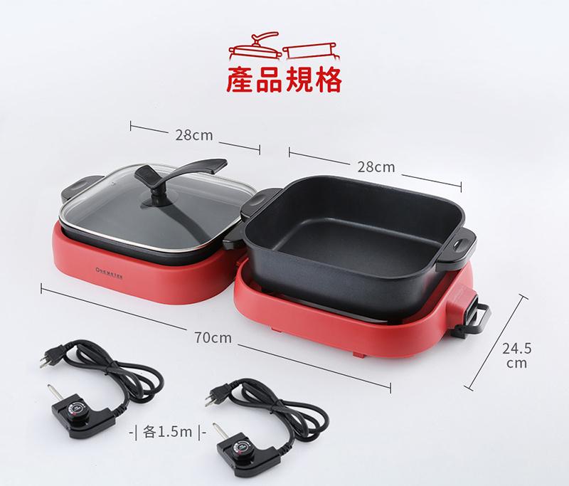 內容物:主機+平面烤盤+深鍋(含玻璃鍋蓋)+分離式溫控電源線x2+說明書