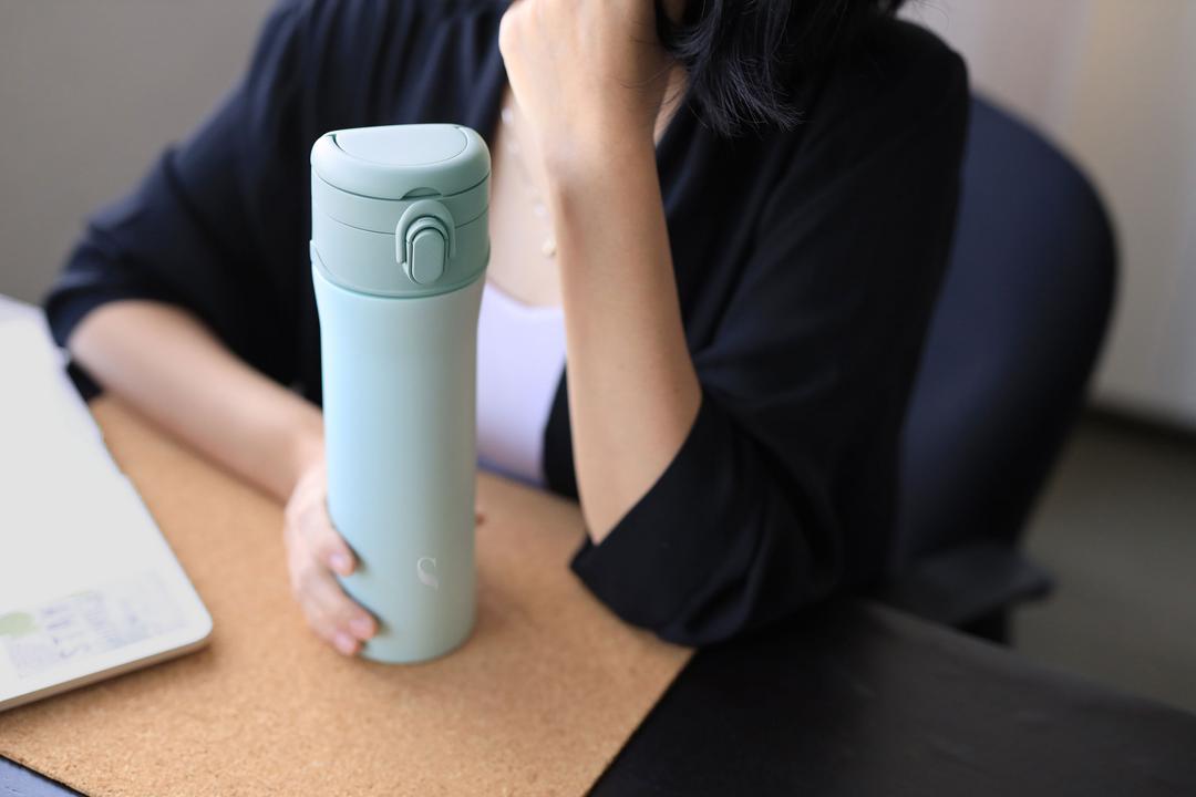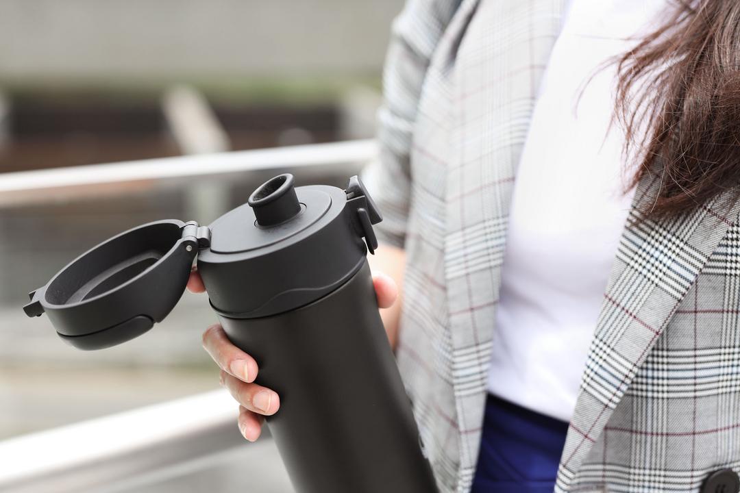 在開車、通勤或在辦公室忙碌工作,一指彈扣飲用,單手輕鬆操作,不須中斷作業或為了開杯而停下腳步。