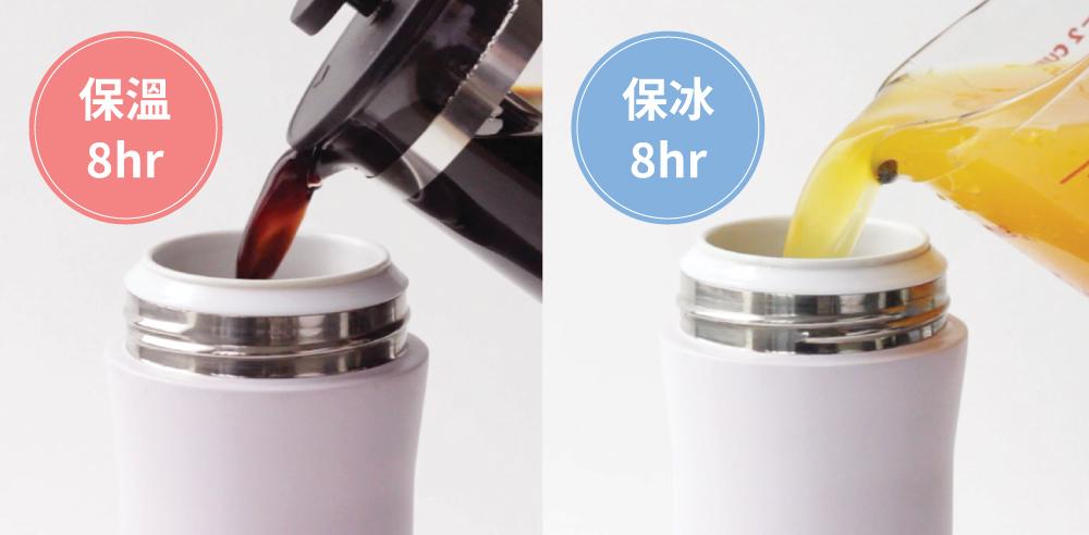 不鏽鋼真空外層,包覆陶瓷內芯,可保持飲料冰涼或溫熱,長達 5-8 小時。