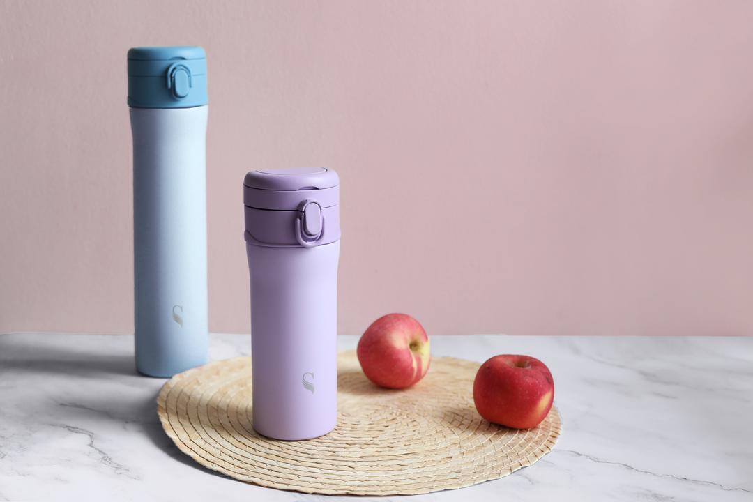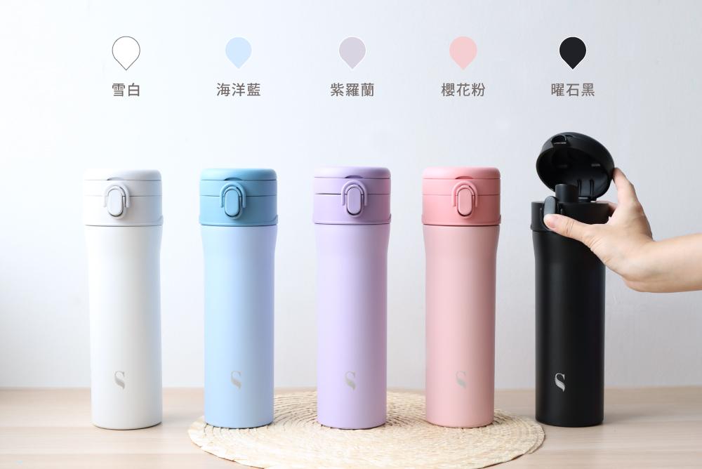 芯動彈蓋杯有五種顏色,紫羅蘭、櫻花粉、海洋藍、曜石黑、雪白,新增加蘋果綠!