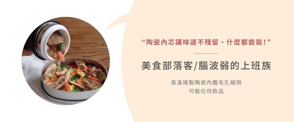 高溫燒製陶瓷內膽毛孔細微,可裝任何飲品,牛奶、咖啡、茶、果汁、中藥、濃湯,清洗後絕不混味,不留細菌。