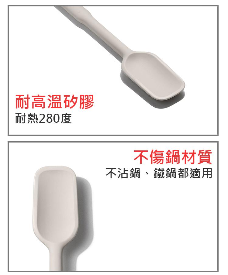 - 前端耐熱矽膠,耐高溫達 280°C,可安心搭配不沾鍋使用