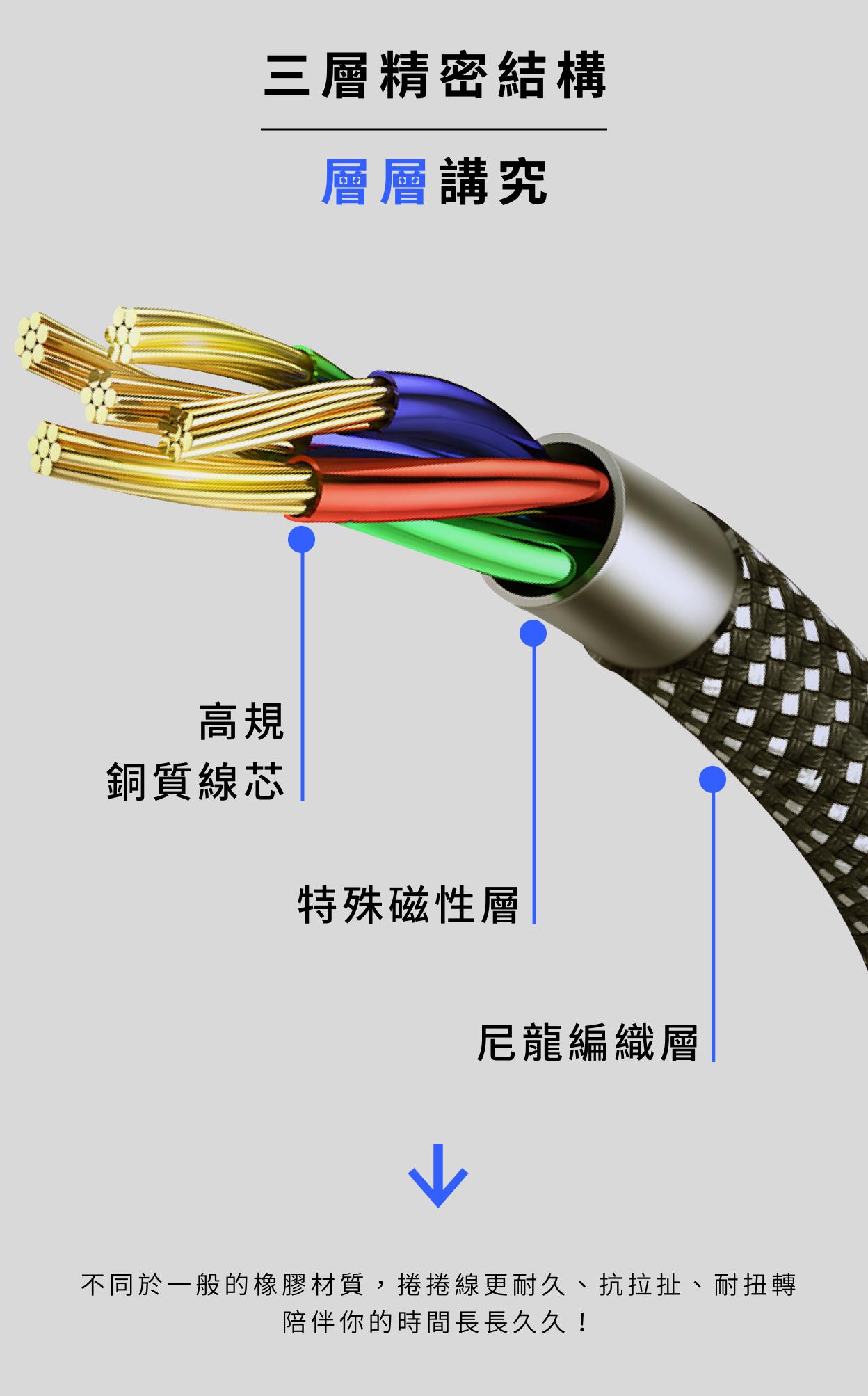 - 三層精密結構,耐用持久抗拉扯