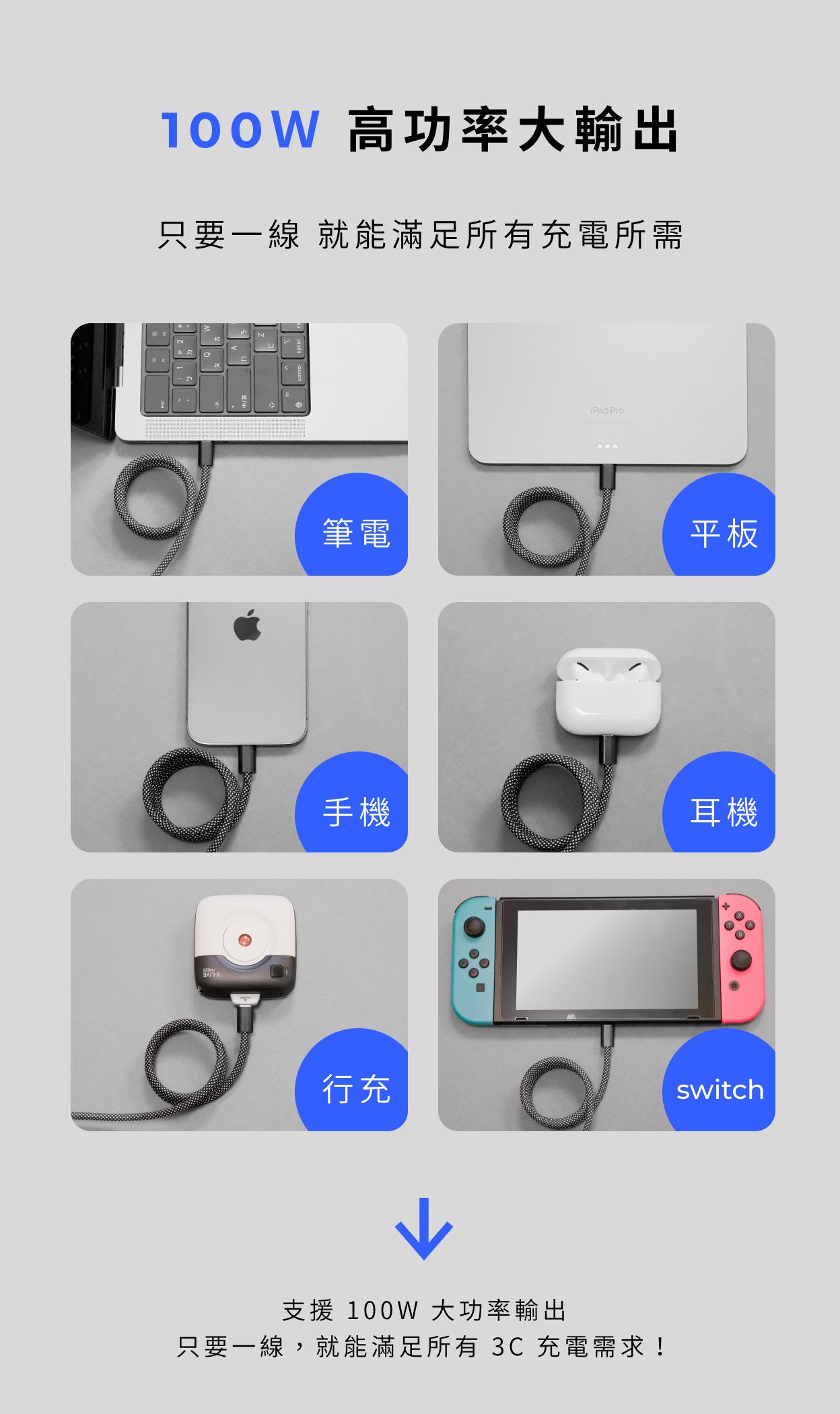 - 100W 高功率,滿足各種3C需求