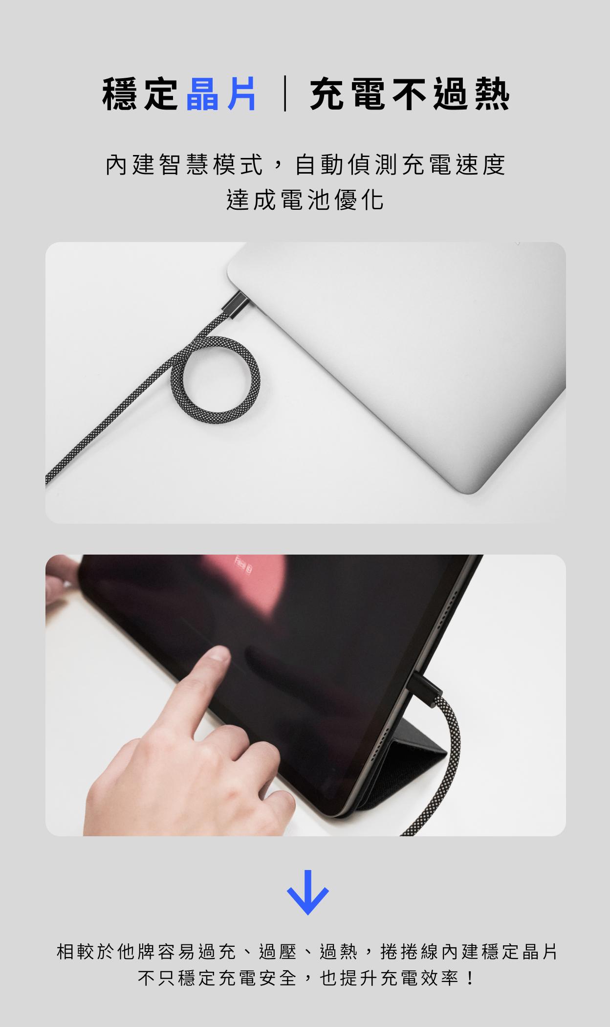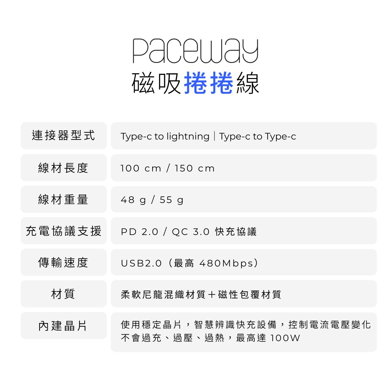 線材整齊放進包包,下次拿出來還是一團糟?換上 Paceway 磁吸捲捲線,即刻解決糾纏!100W 高功率快充,智慧辨識不過充、過熱;耐用抗拉扯材質,360° 零死角磁吸設計,輕鬆整線、直覺收納沒煩惱!