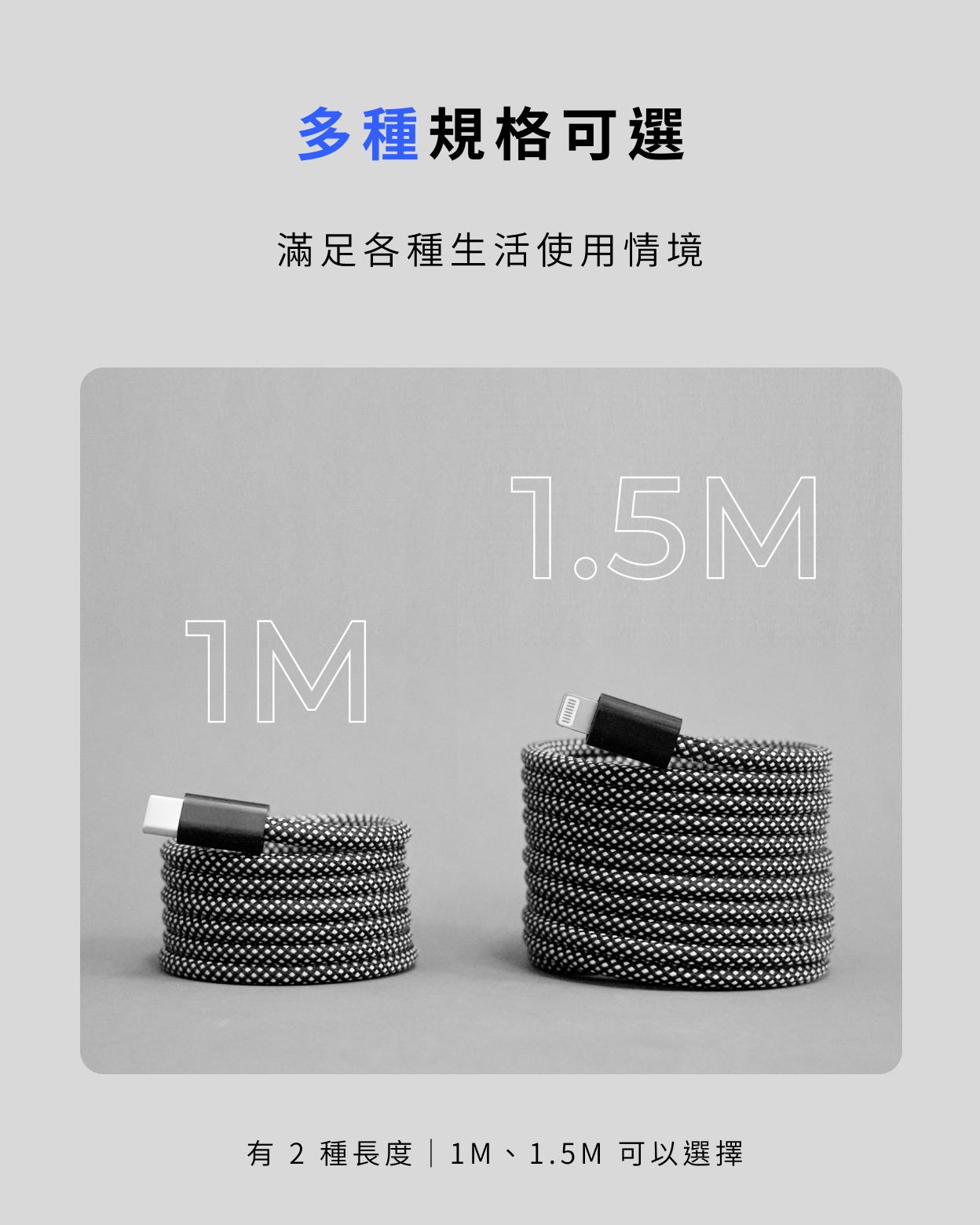 - 1M、1.5M 規格,雙色自由選擇