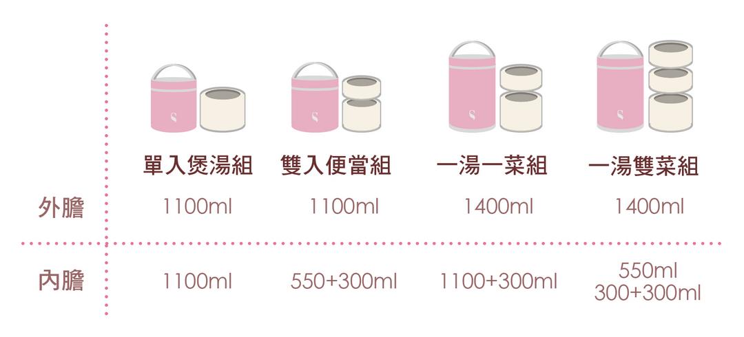 SWANZ 最新推出可以自由組合、更換內芯的陶瓷悶燒罐!100% 硬白瓷打造,不產生化學反應,甜鹹食都能裝;內含三種容量的內芯,能分裝白飯、主食、配菜、水果等,需要什麼就帶什麼。雙層抽真空,保溫保冷 5~8 小時,大口徑好盛裝、易清潔,不僅能悶燒稀飯、甜鹹粥、十穀餐點等料理,還能外帶餐點,以及做為便當盒使用。