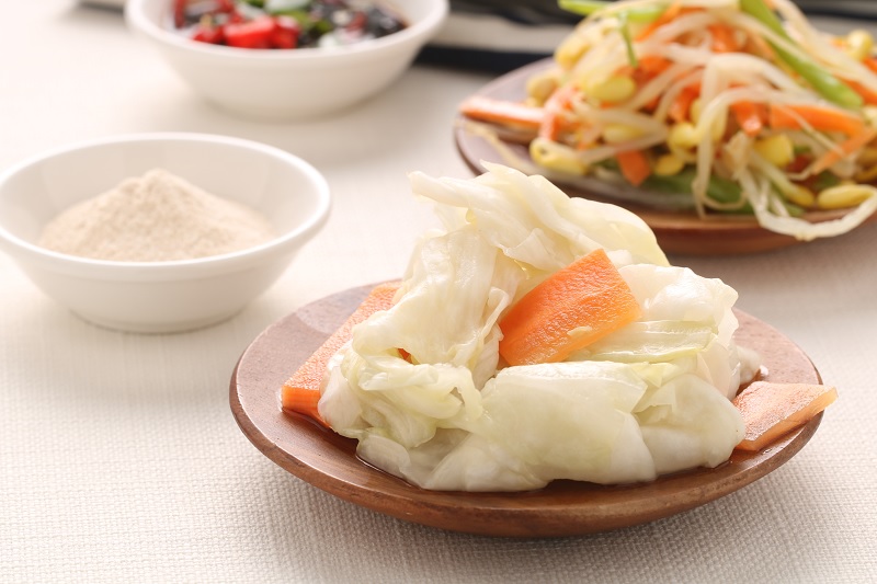- 製作涼拌菜時,用鹽麴粉代替鹽巴來醃製。