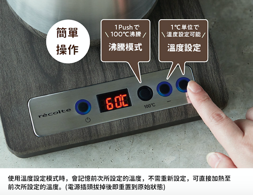 品名:recolte Control 溫控細口手沖壺 木紋款