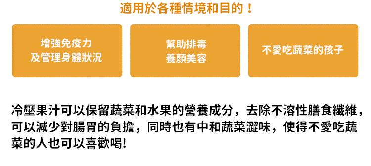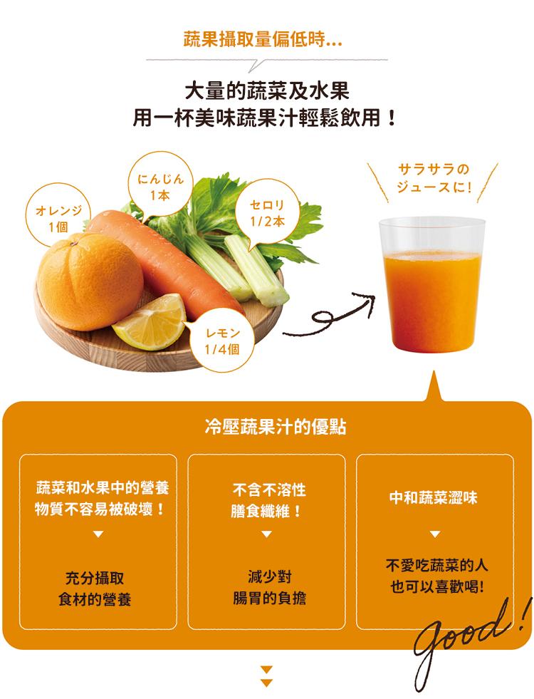 - 低速冷壓萃取,防止營養流失