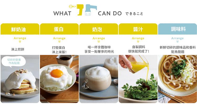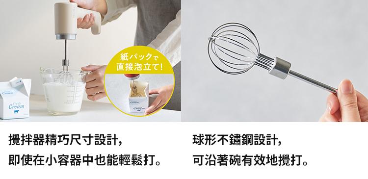 隨附打蛋器、調理杯,可依不同料理需求調整,不僅可以打發奶油、蛋白,還可以打出蓬鬆綿密的咖啡奶泡。