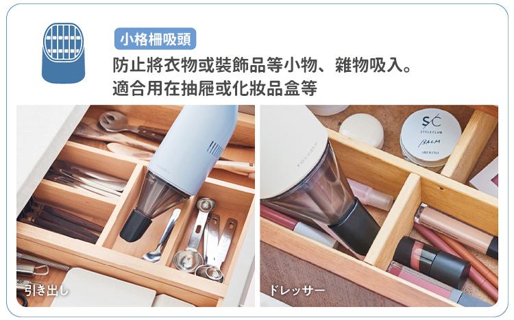 搭配除塵吸頭清潔,磁磚縫隙的咖啡粉也能沒問題!