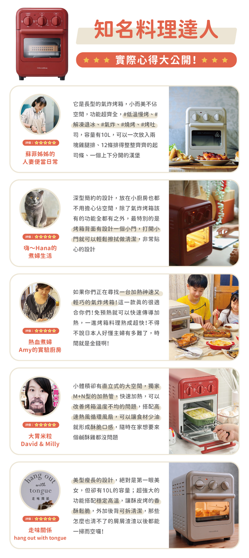 可根據料理需求選擇適合模式,從早晨的烤土司,到下午孩子們的點心果乾,以及晚餐的減油炸物,輕鬆變化出各種餐桌上家庭菜餚。
