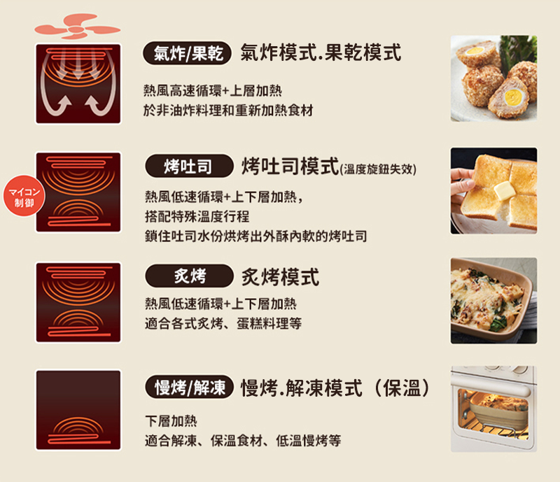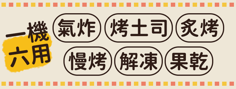 功能:氣炸、烤土司、炙烤、慢烤、解凍、果乾