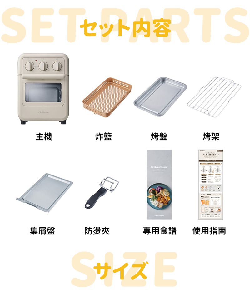 內容物:主機+烤盤+炸籃+烤架+集屑盤+防燙夾+食譜