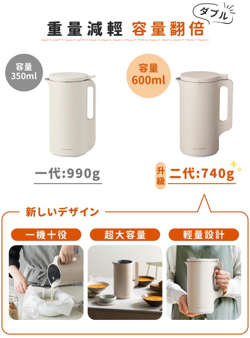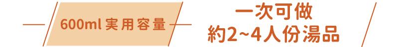 二代容量加倍升級,600L 剛剛好容量,一次可做約 2~4 人份的湯品,適合小家庭烹煮料理使用。