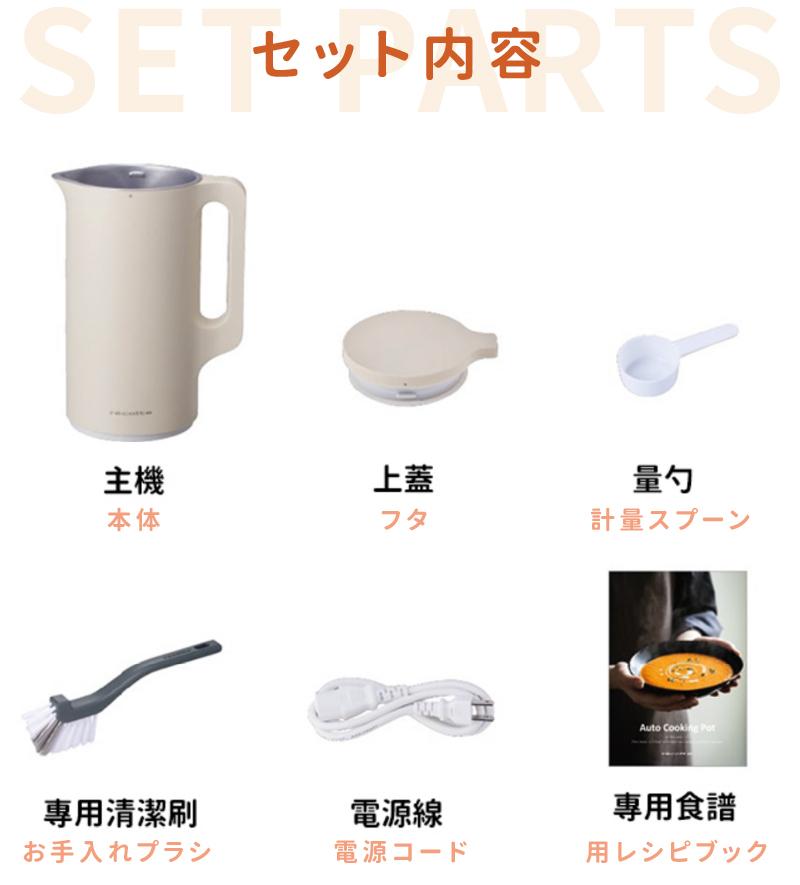 內容物: 主機、上蓋、量勺、電源線、清潔刷、中文操作手冊、商品服務保證卡、30 道精緻食譜