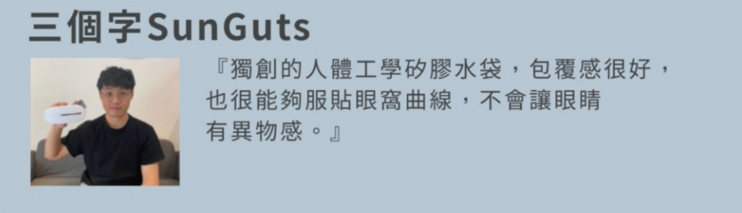 • 符合人體工學設計,水袋服貼眼周肌膚