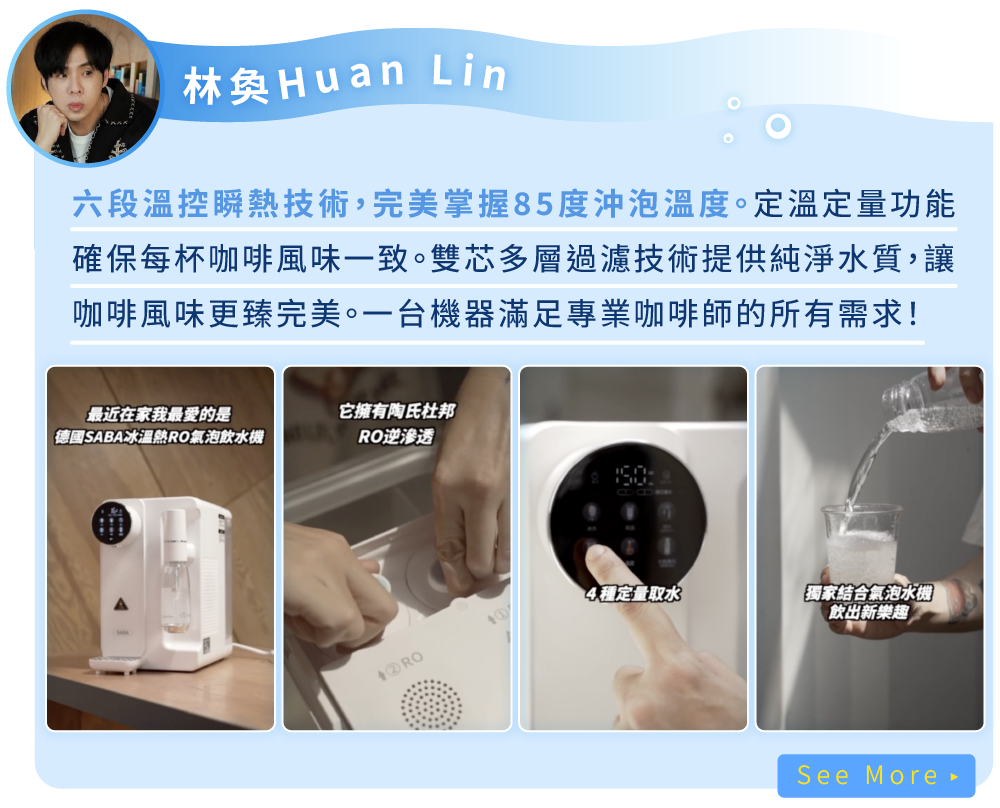 獨家首創!RO冰溫熱飲水機與氣泡水機合為一體,滿足日常飲水多樣化需求! 3 秒瞬熱搭配 6 段溫控,無論是早上起床幫小孩泡奶粉,或是炎炎午後想來一杯冰涼解渴的氣泡飲,都可一機搞定不再手忙腳亂!