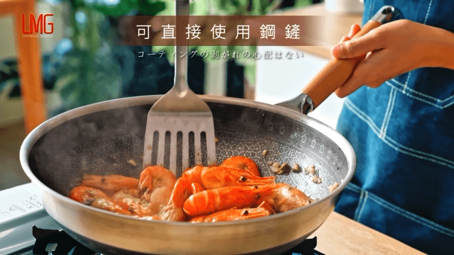 台灣 MIT 製造,獨家立體櫻花壓紋結構,用蒸氣懸浮技法,減少與食物接觸的面積,安全無塗層,輕鬆翻炒也能不沾;316 不鏽鋼材質,可直接用鋼鏟,加高鍋蓋加深鍋型,各種料理一鍋搞定!