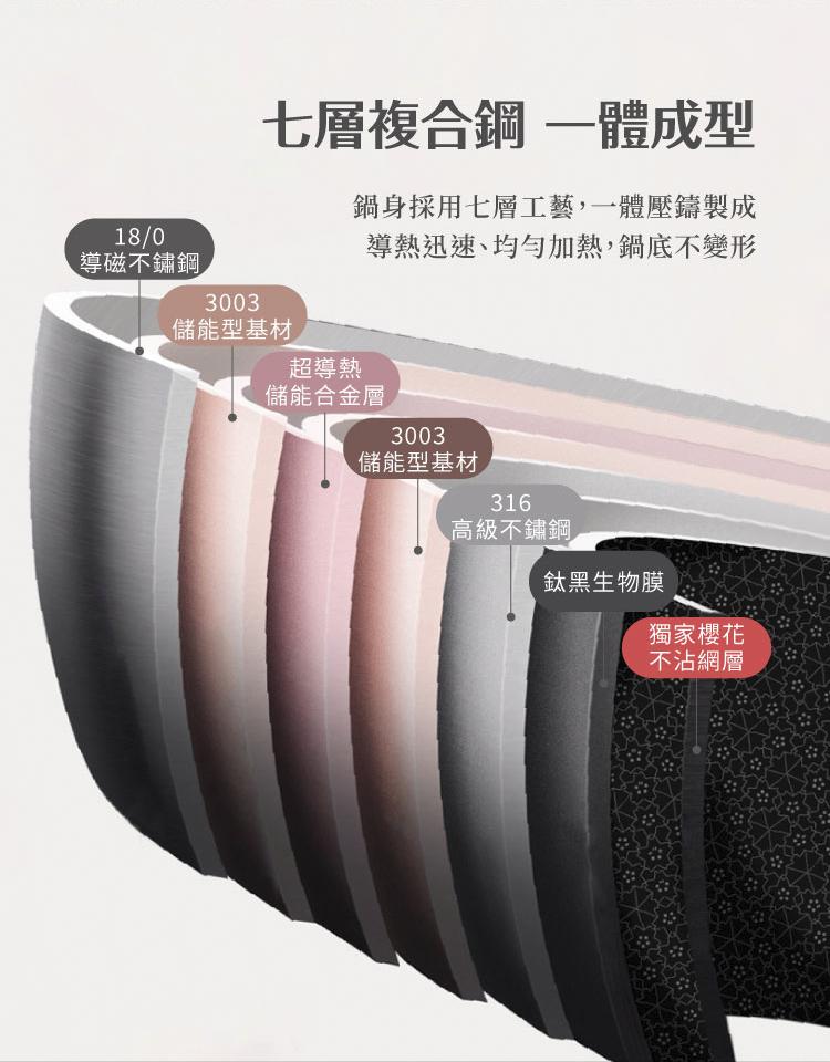 台灣製 316 不鏽鋼 櫻花不沾七層炒鍋