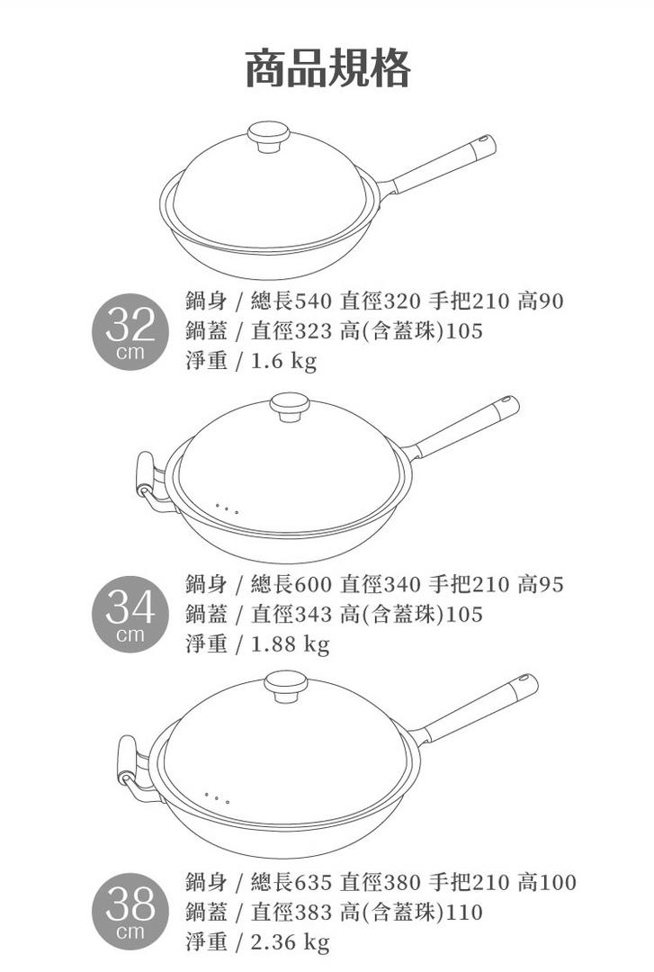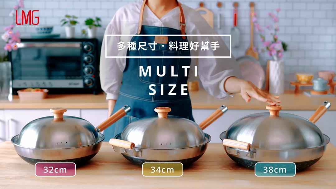 擁有 32cm、34cm 與 38cm 深鍋大容量,與朋友家人聚餐時,可以烹煮大份量的湯或菜餚,省時又方便!