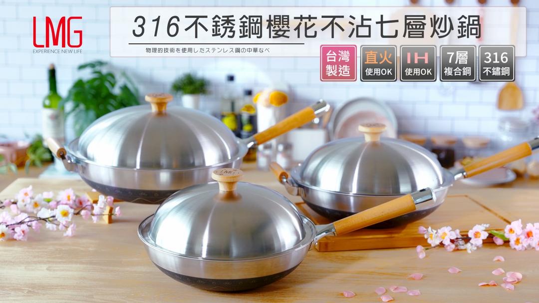 品名:台灣製 LMG 316 不鏽鋼 櫻花不沾七層炒鍋