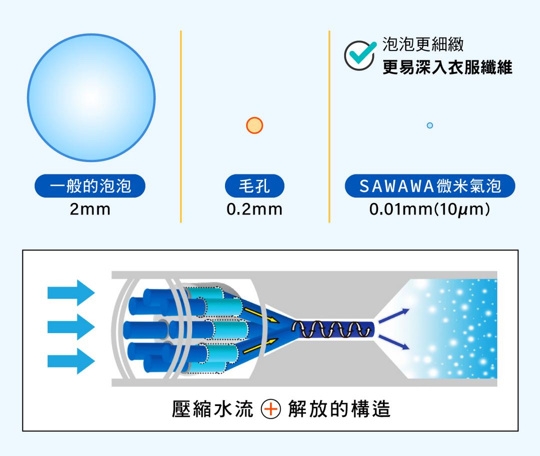 • 0.01mm 微米氣泡,深入衣物纖維清潔