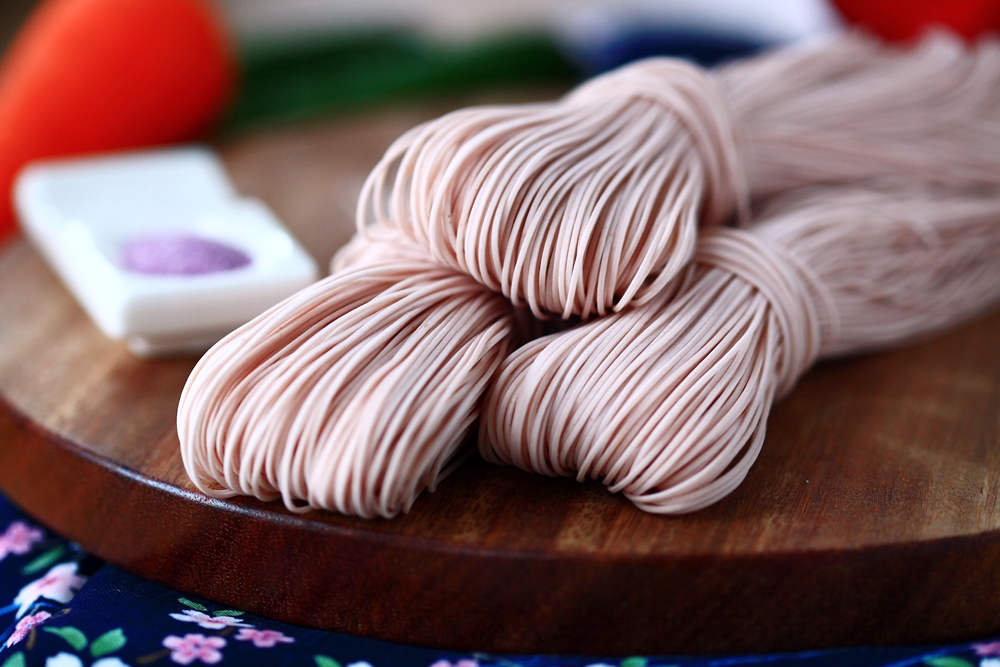 在精挑細選小麥粉、台灣薑黃、水、食鹽的相互加乘下,以傳統炊仔麵線工法製程,過程中麵糰需經過六道輾壓,並進蒸箱蒸製,全程絕無添加防腐劑及人工添加劑,呈現出薑黃麵線最純粹、天然的風味。